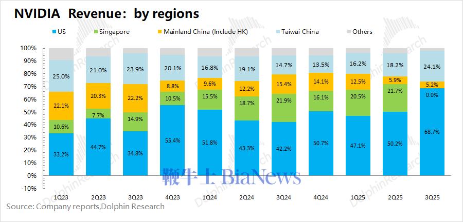 a)中国市场基本已经丢失:原本英伟达可以在中国市场销售H20芯片,而在H20被禁之后,中国市场在英伟达最近报表中的份额已经滑落至5%左右(原本中国市场能给贡献公司2成左右的收入)。